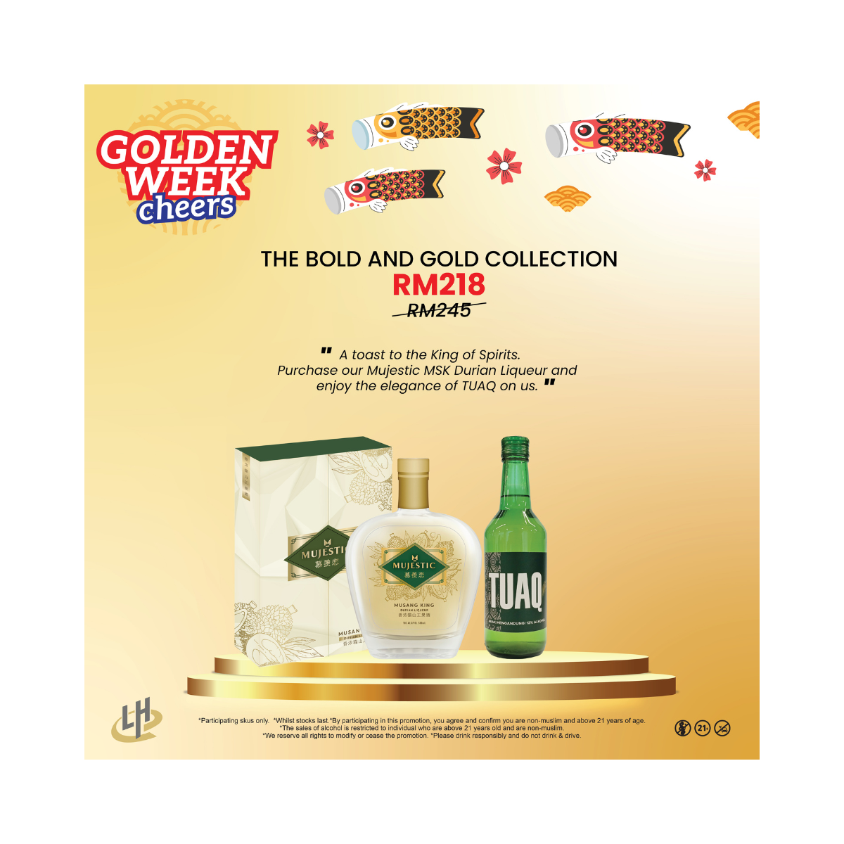 The Bold & Gold Collection “A toast to the King of Spirits. Purchase our Mujestic MSK Durian Liqueur and enjoy the elegance of TUAQ on us.”